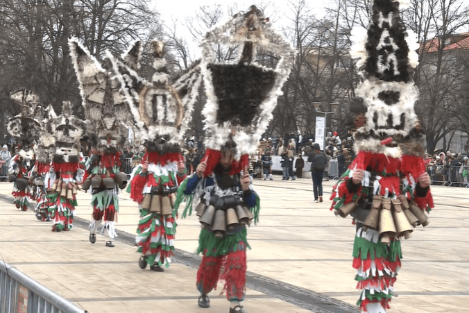 ●保加利亚佩尔尼克市近日举办国际面具节,来自保加利亚、西班牙、意大利、克罗地亚等国的30多个表演团体轮番为观众带来表演,每年吸引数万游客前来观看。